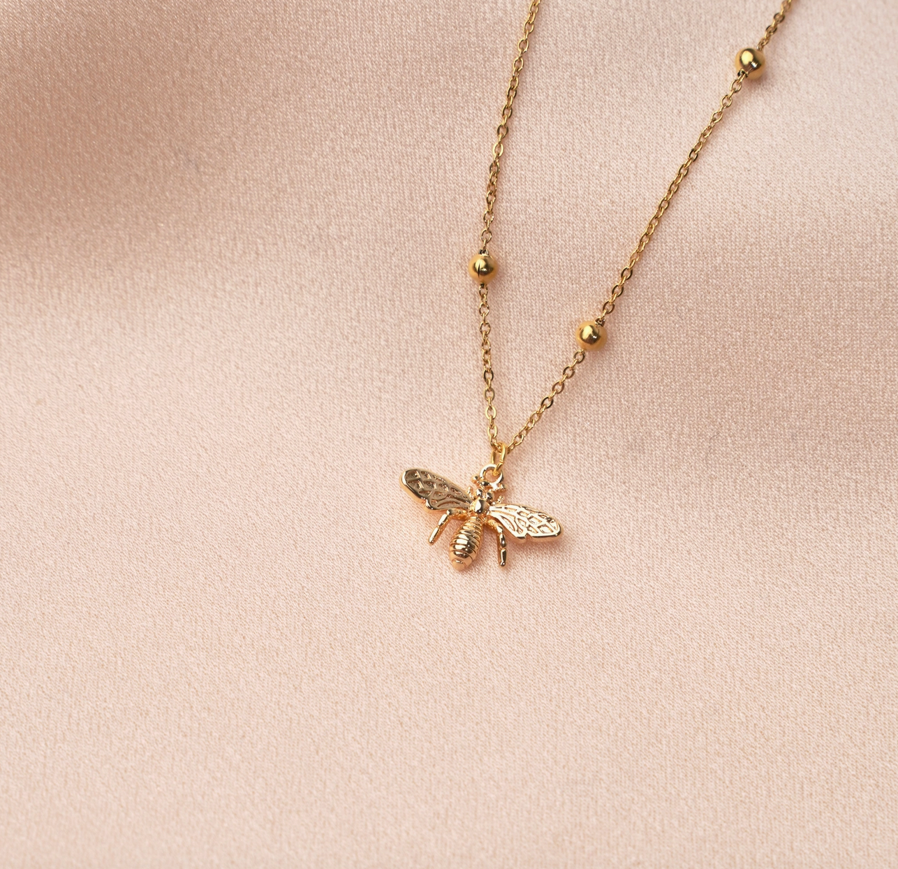 Women's necklace with a thin stainless steel ball chain that features a small brass bee-shaped pendant. It closes with a lobster clasp, and the length is adjustable thanks to the small 5 cm adjustment chain. Minimalist and chic, it is perfect to give as a gift!