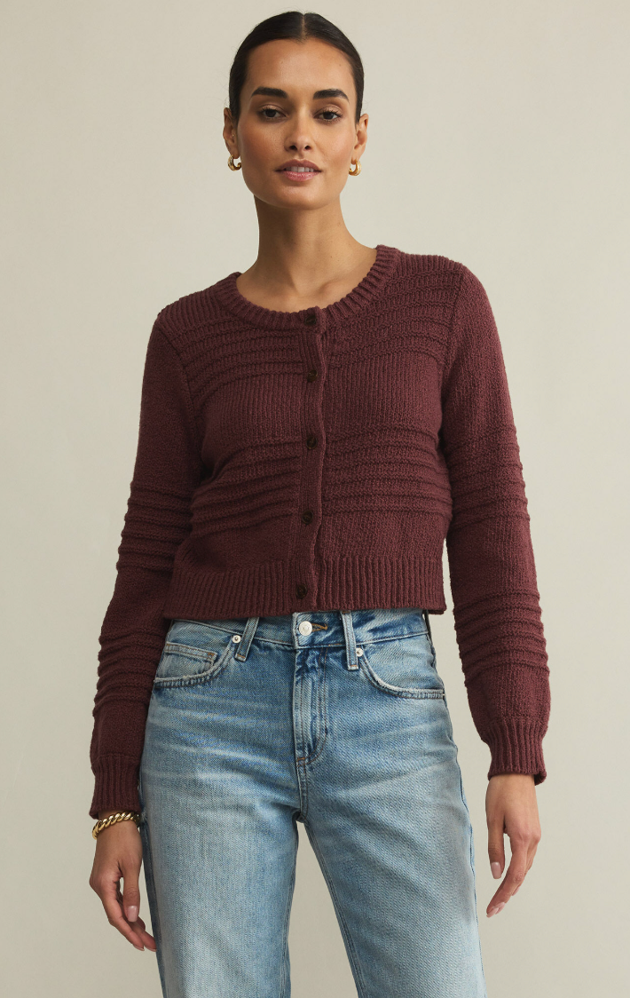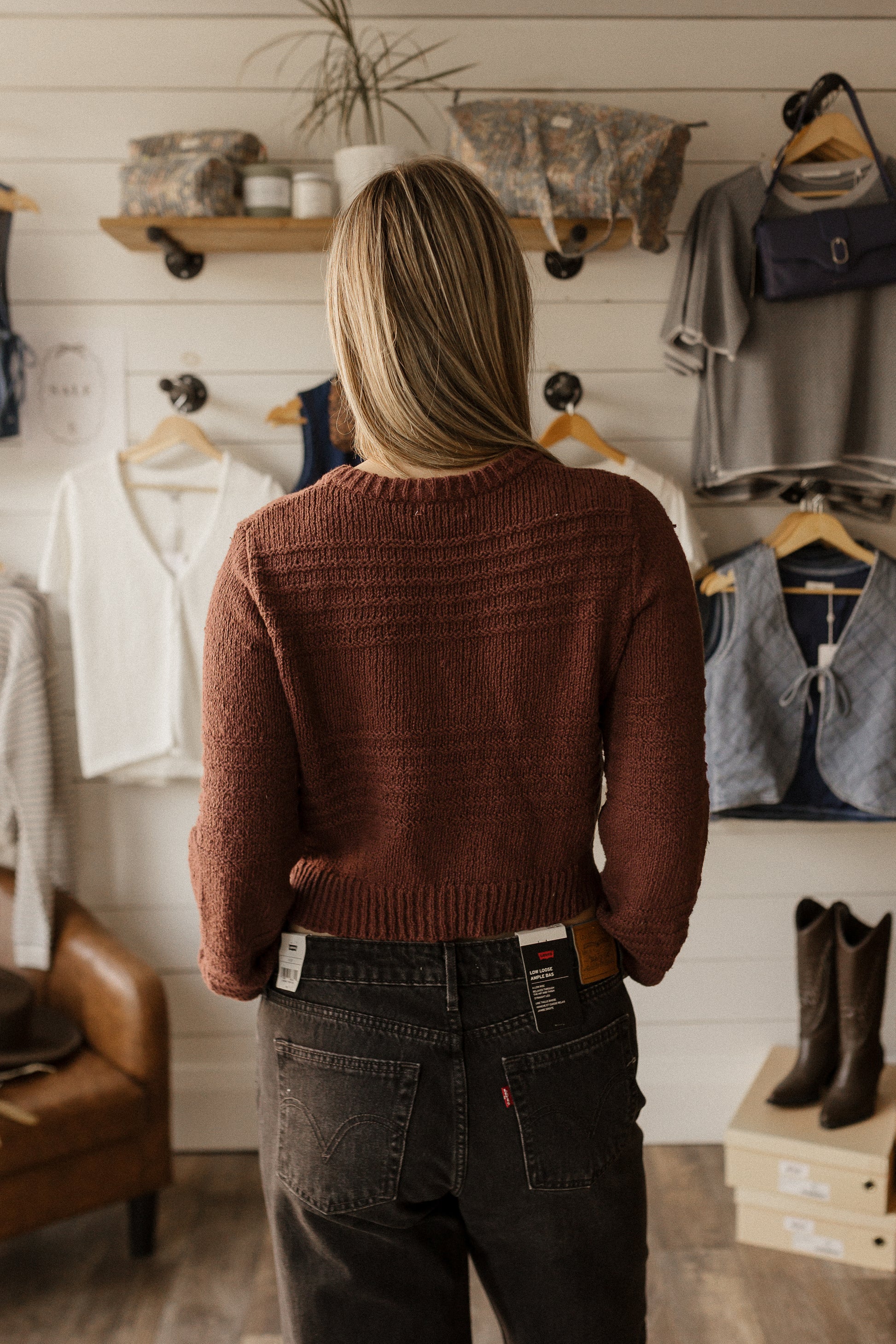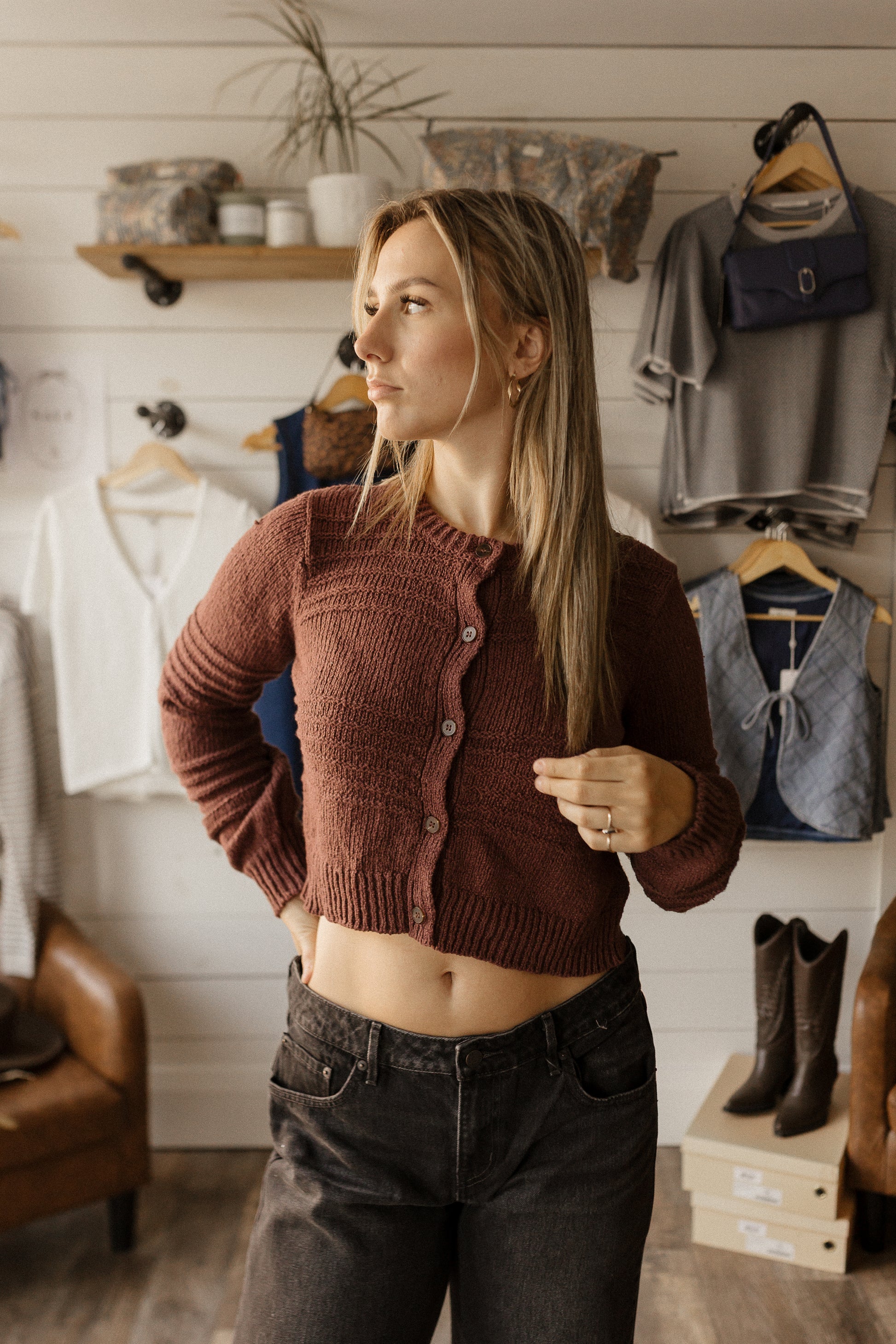 Cozy up in this stunning knit sweater with dainty detailing and front buttons.