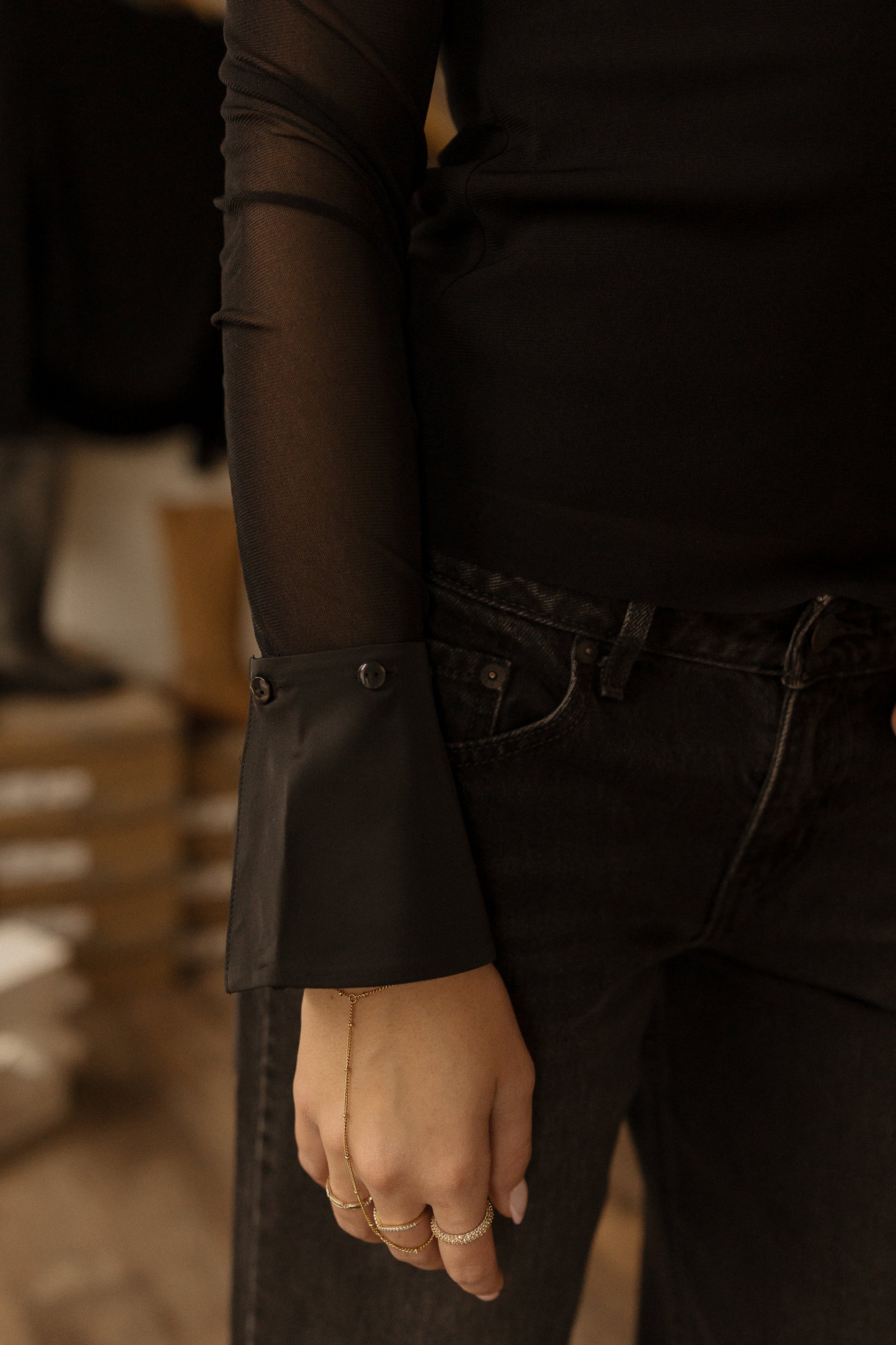 Gorgeous mesh top featuring detachable cuffs and collar for mix-and-match styling versatility. Swap out the collar and cuffs to transform your look in seconds—one top, endless styling options!