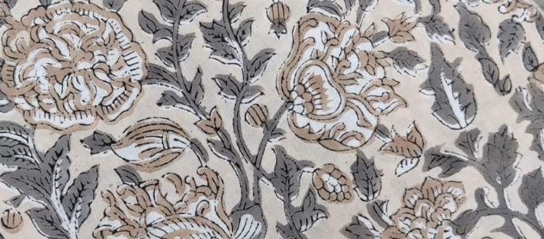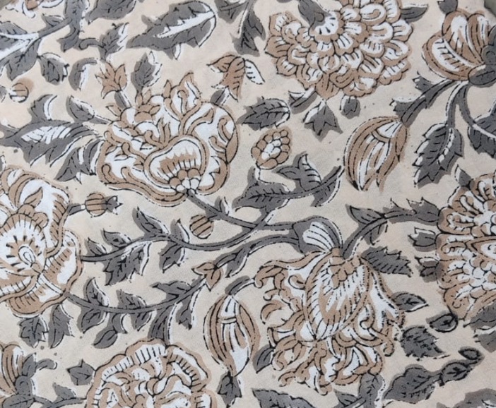 Made from 100% cotton, hand block printed fabrics. Machine quilted by skilled women artisans. Using long lasting YKK zippers. Inside is foam, recycled fabrics, non woven fabric and occasionally canvas to use dead stock materials.