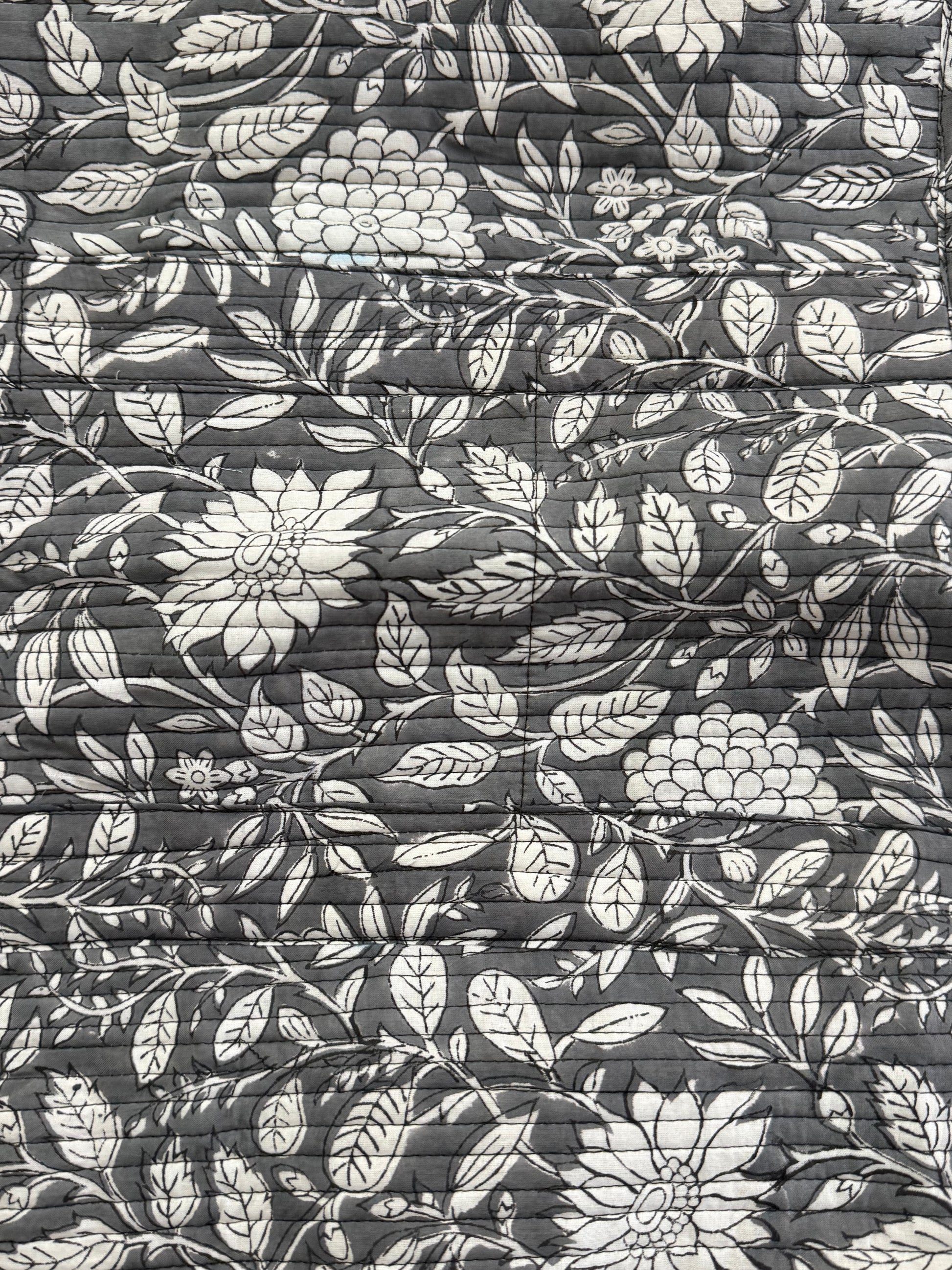 Made from 100% cotton, hand block printed fabrics. Machine quilted by skilled women artisans. Using long lasting YKK zippers. Inside is foam, recycled fabrics, non woven fabric and occasionally canvas to use dead stock materials.