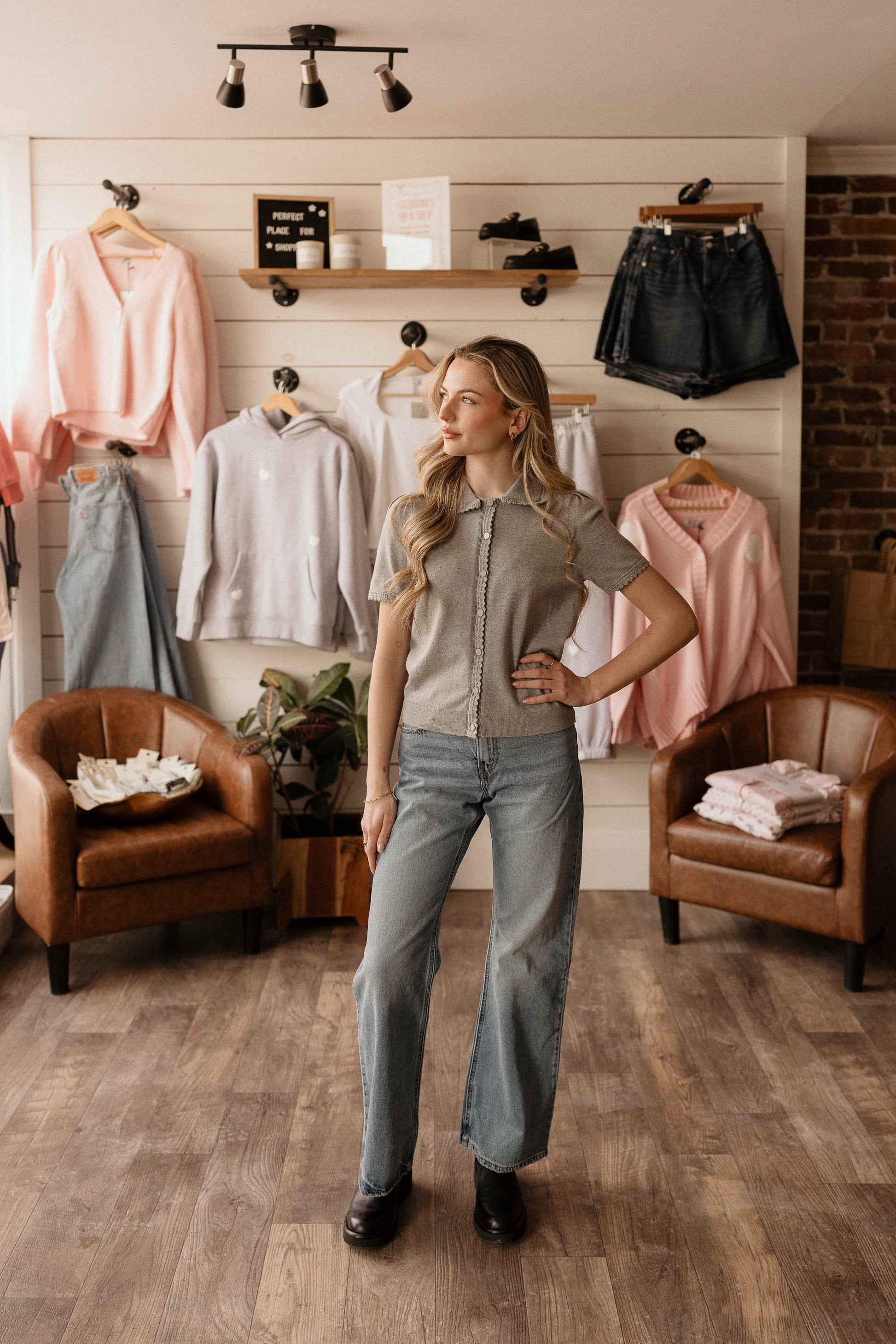 short sleeve cardigan with a collar and unique hem