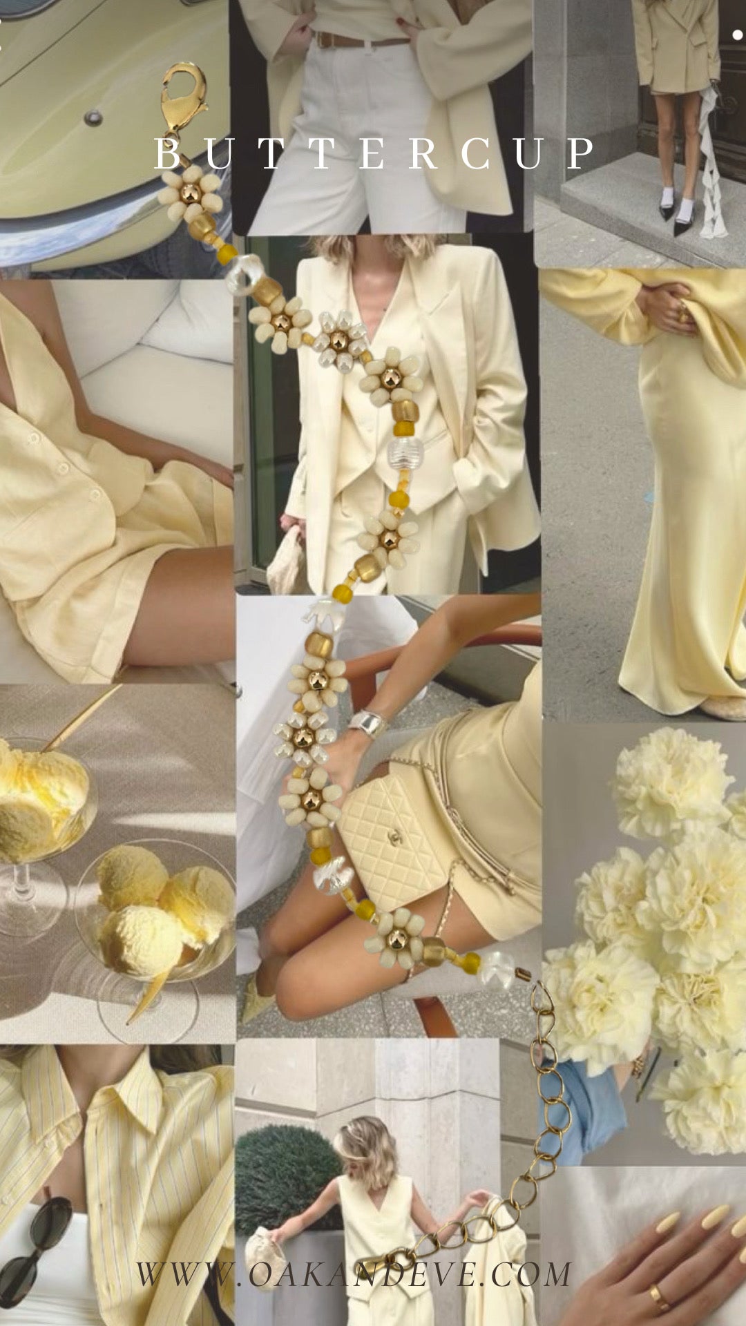Available in 6 options: Vanilla Bean (cream daisy with tan beads in between), Vanilla (all cream with gold centre), Espresso (espresso), Café au lait (mixed pearls and espresso/vanilla bean beads), matte merlo, and glossy merlo.
