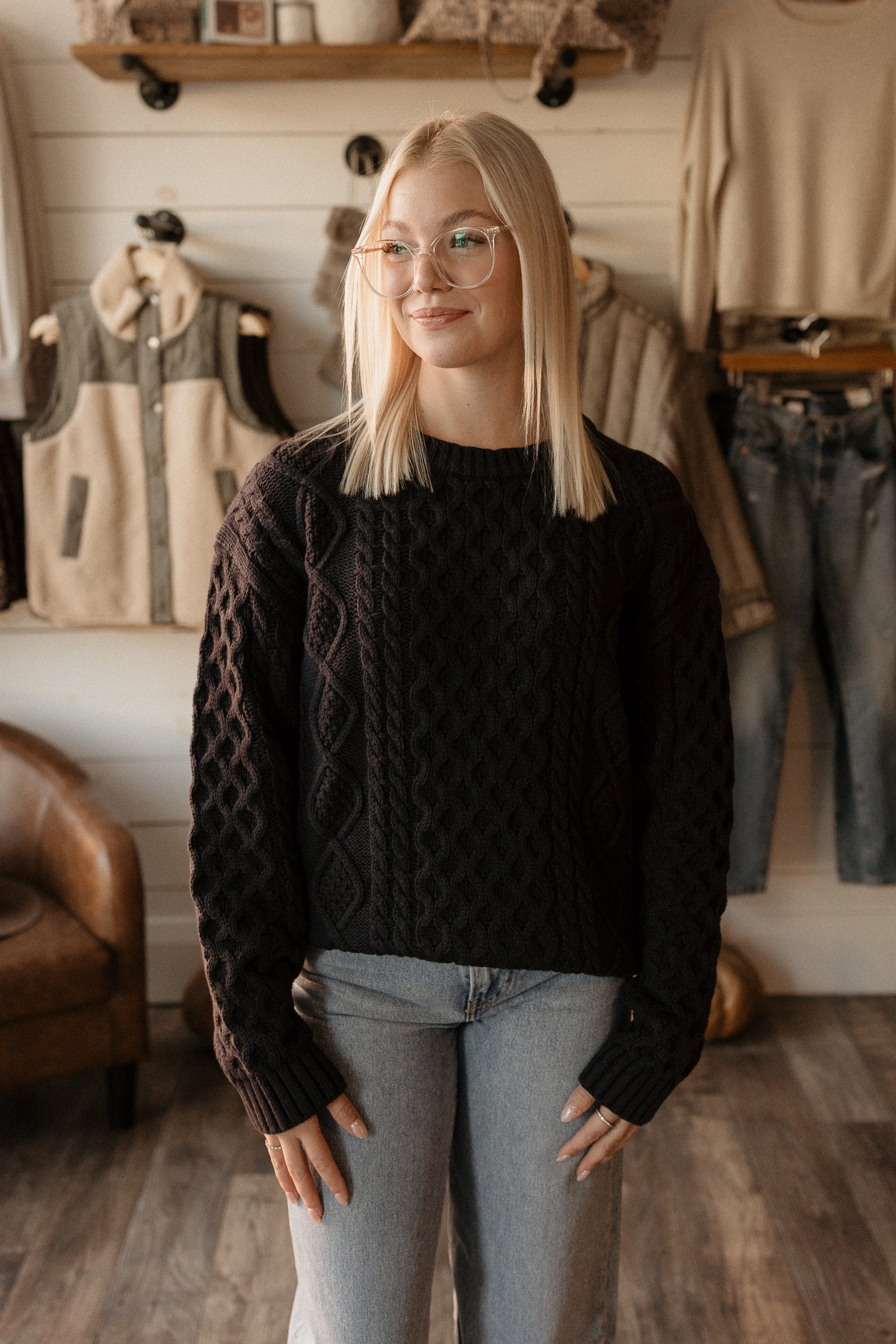 Navy blue Irish cable knit oversized sweater