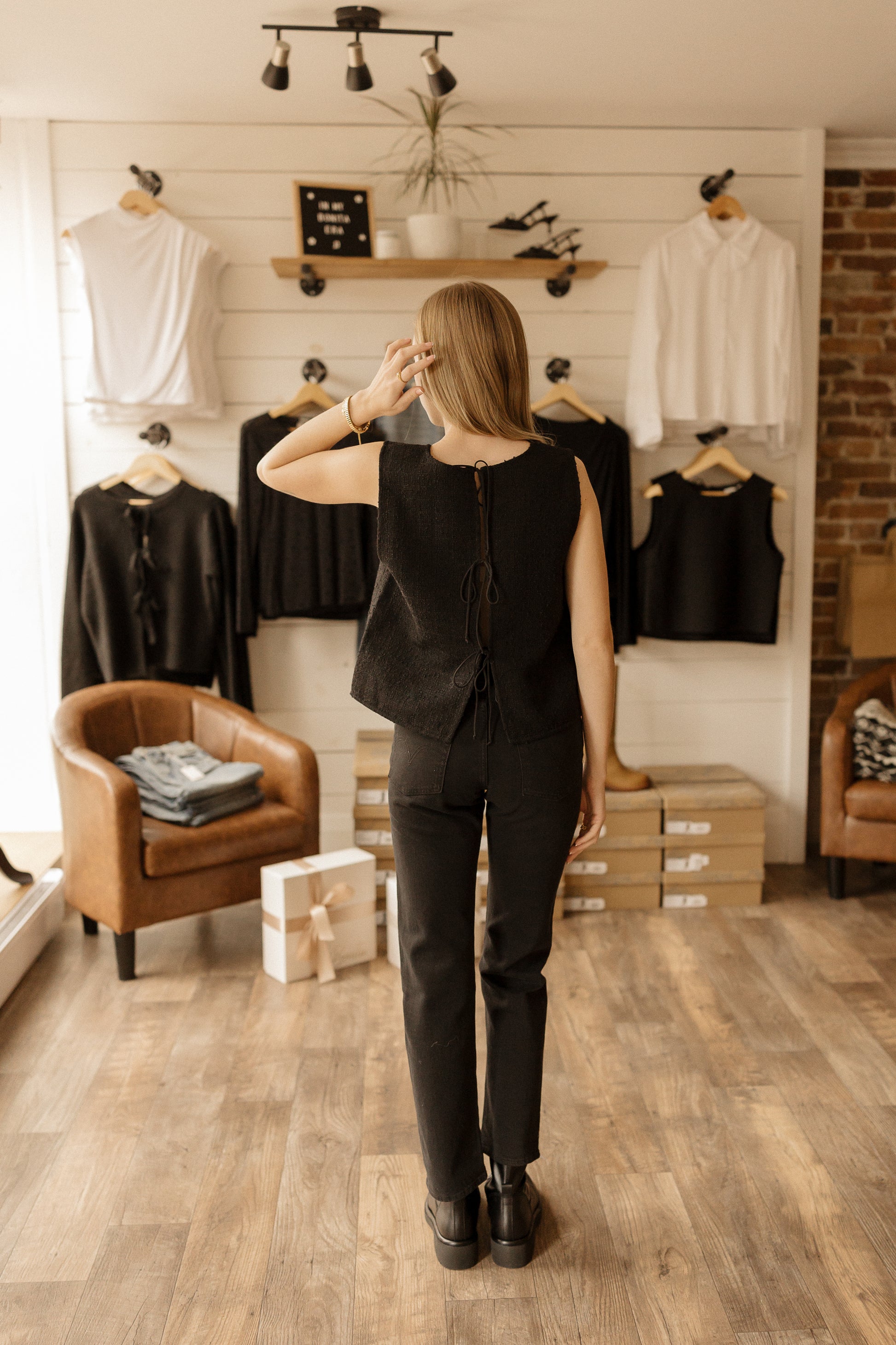 Elevate your style game with this reversible sleeveless top! Bow details that work double duty — wear them subtly at the back or boldly at the front. One top, two totally different looks!
