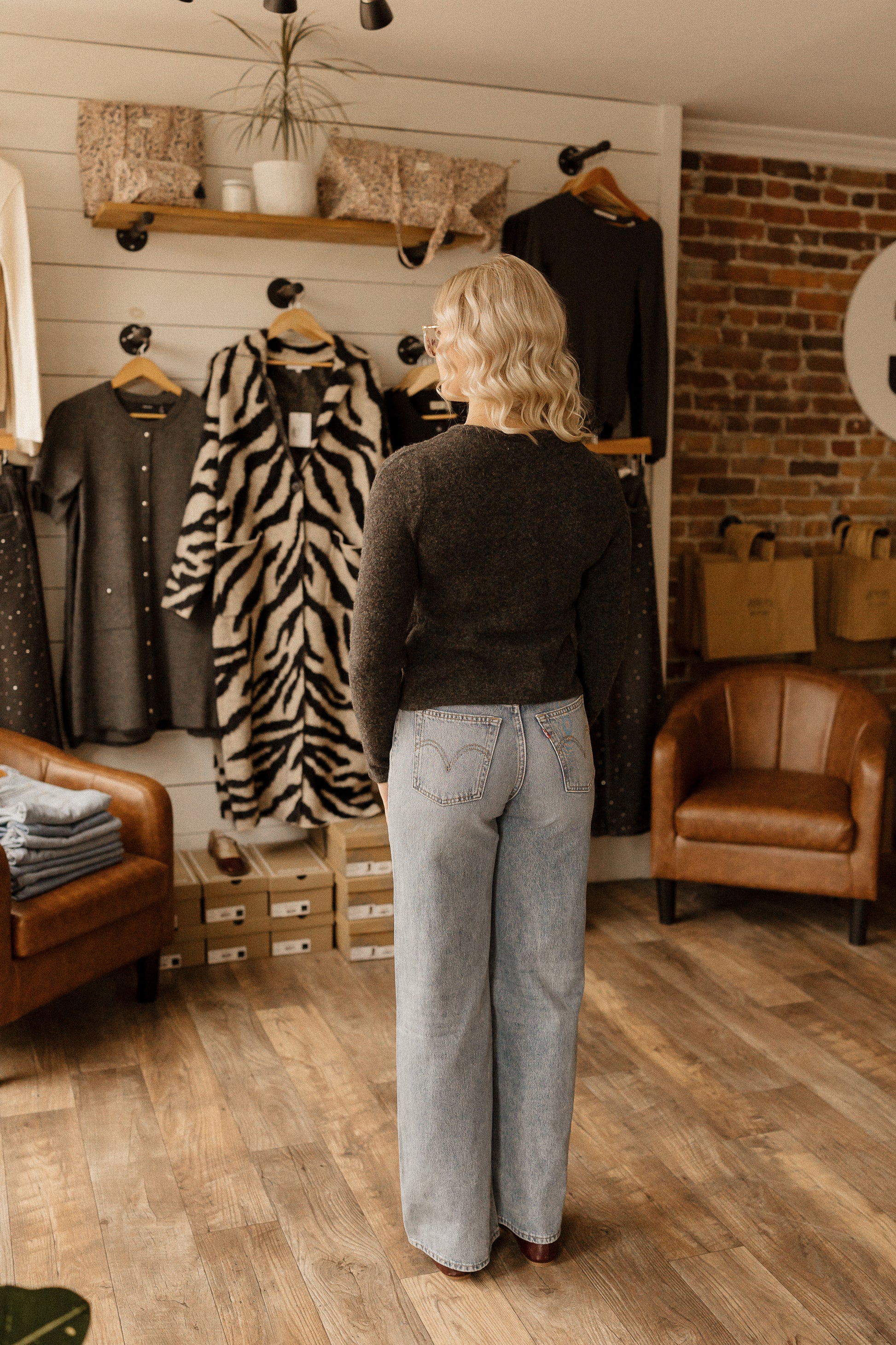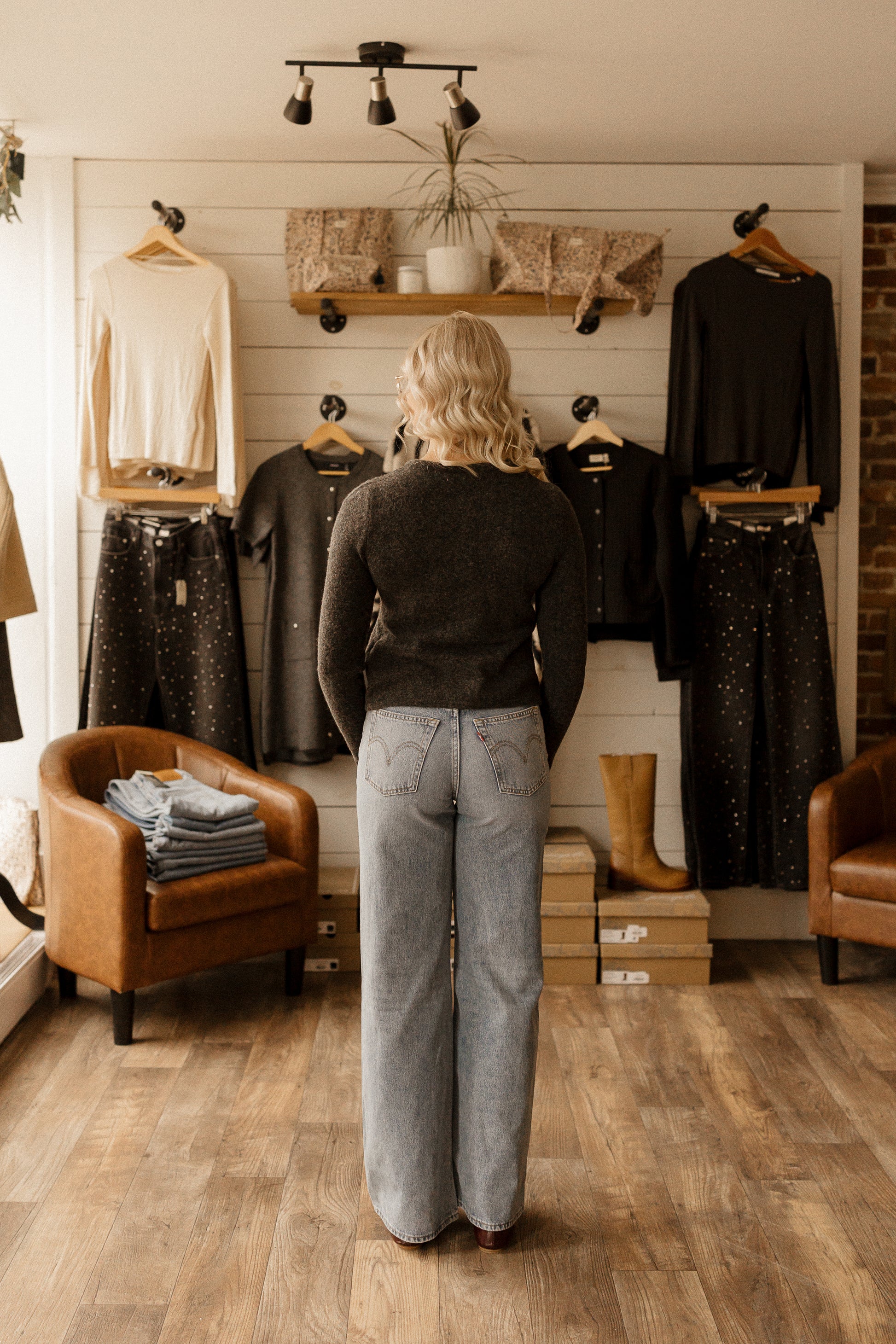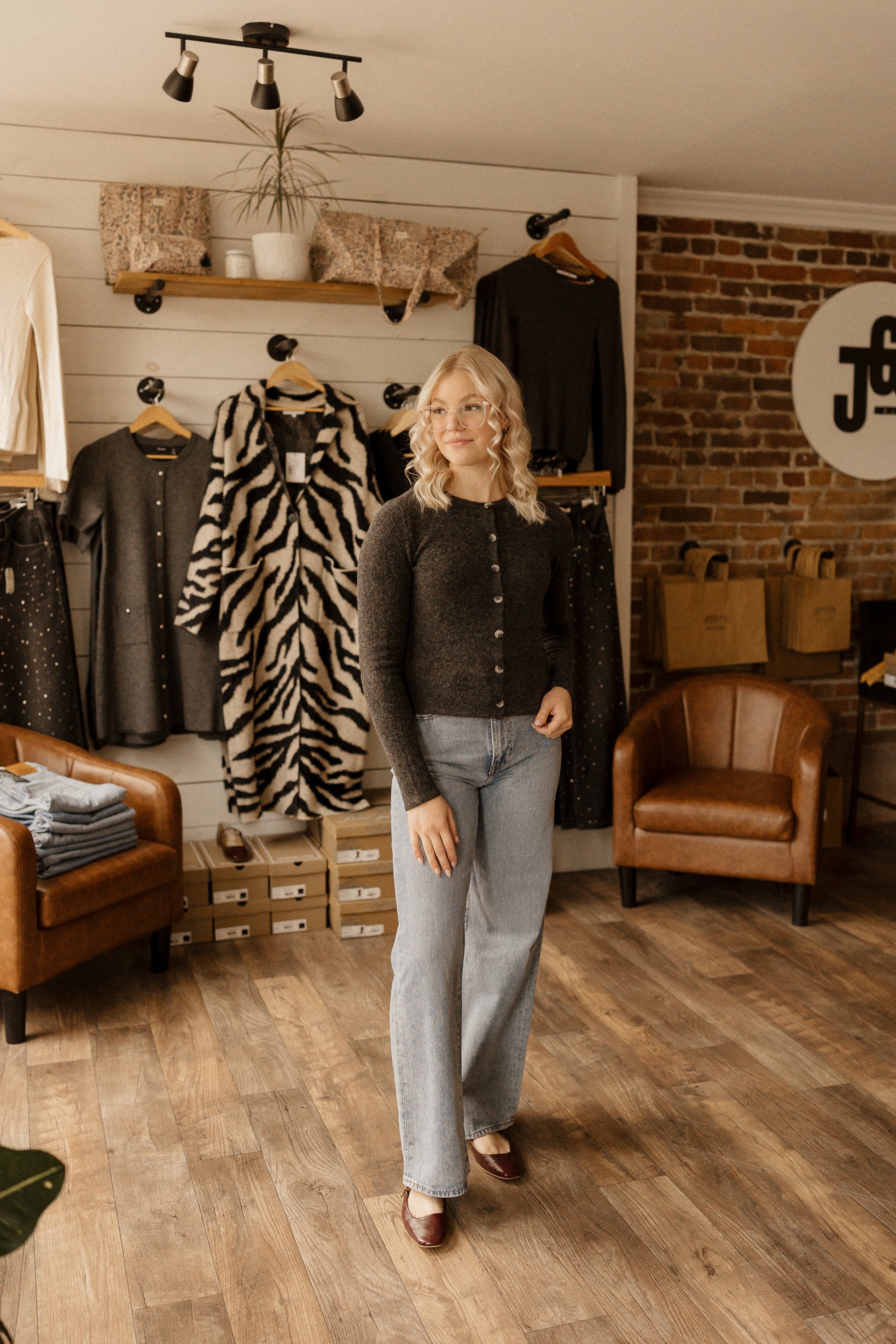 This charcoal cardigan is your go-to cozy layer buddy for any outfit.
