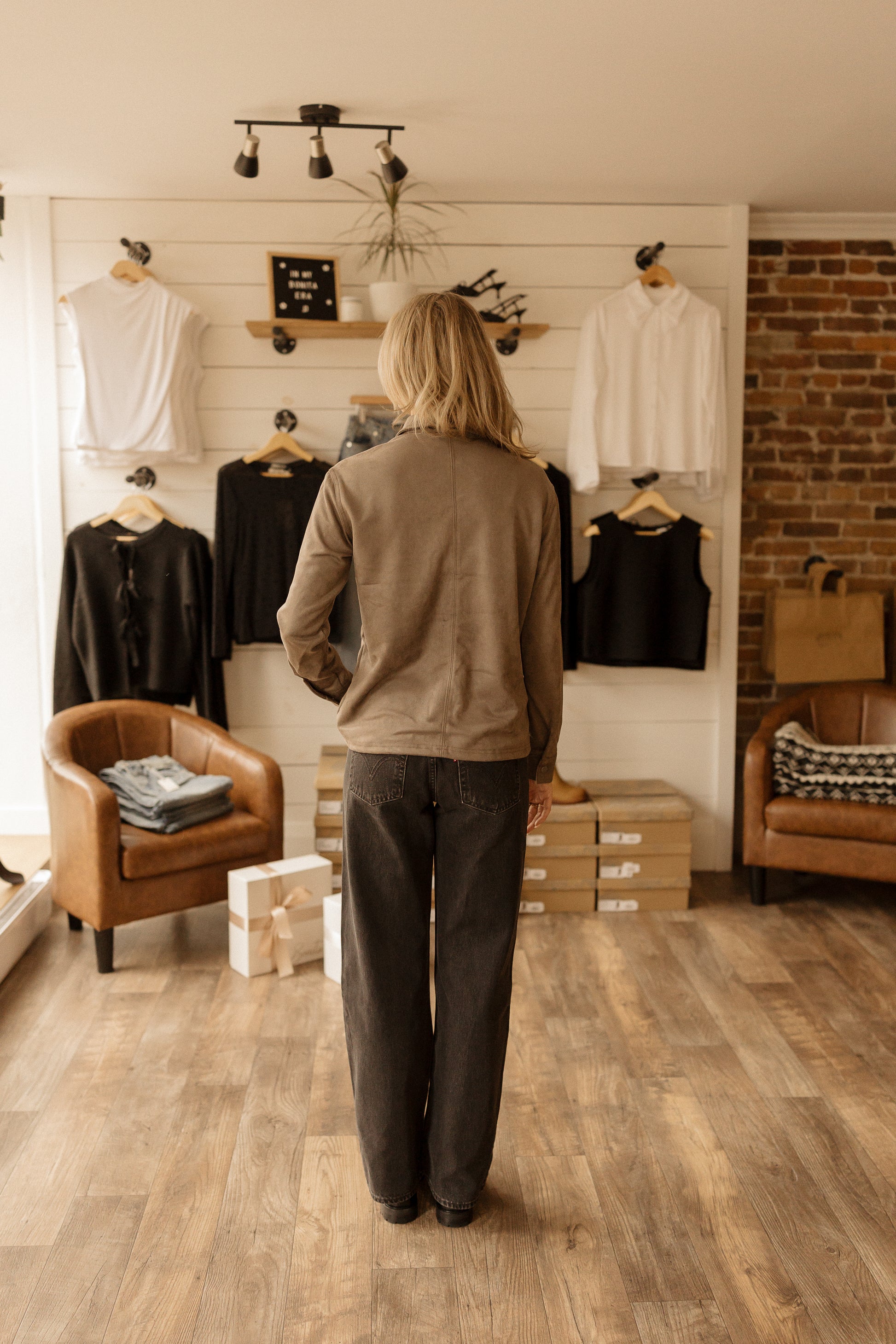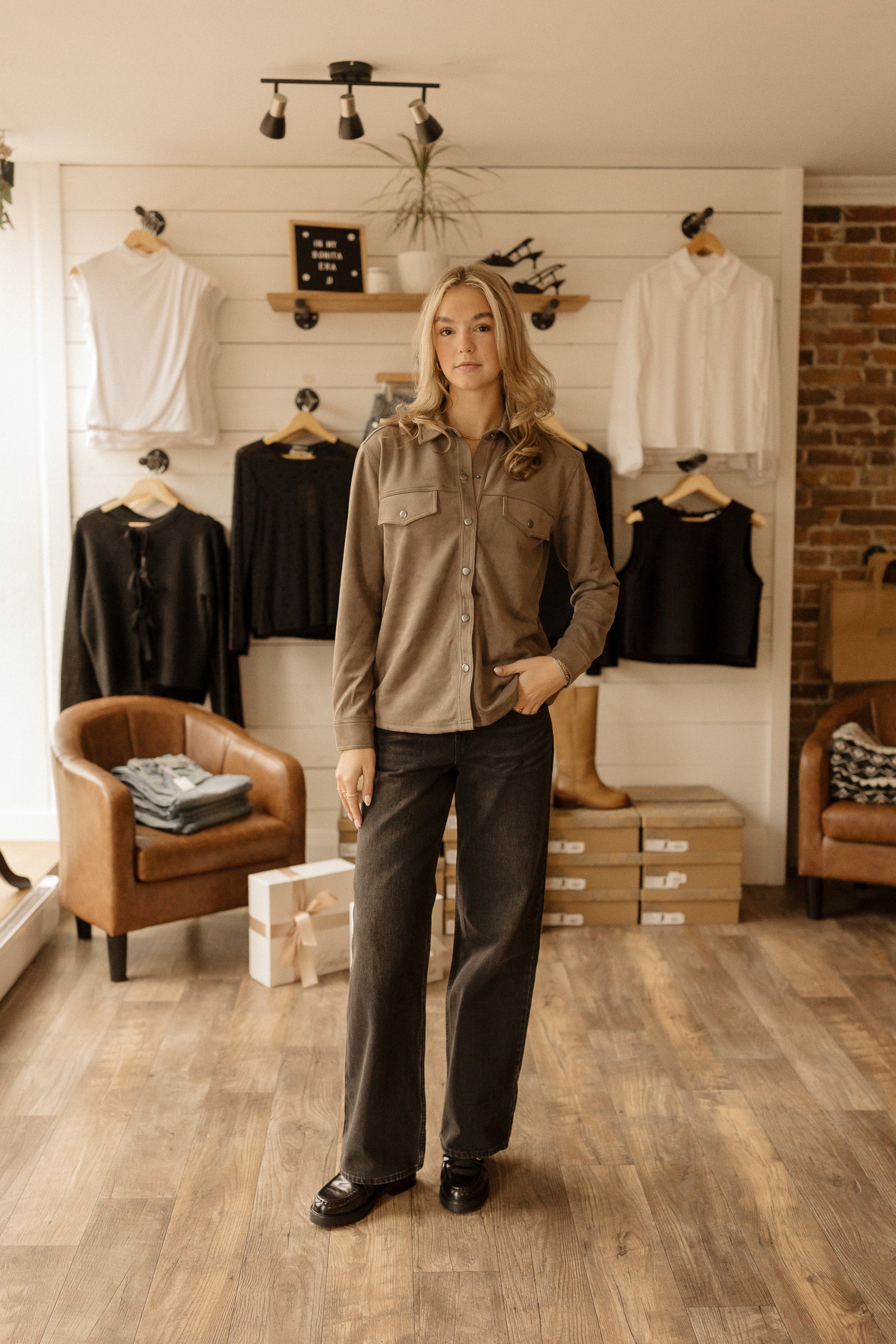 Sheila brings effortless elegance to your everyday style. This velvet shacket in a versatile neutral features front pockets and a perfect shirt-jacket hybrid fit. Incredibly soft, endlessly wearable, and ready to become your favourite piece.