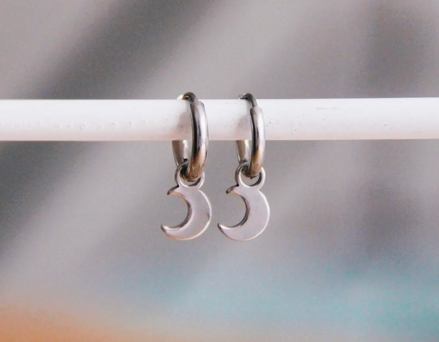 Silver moon huggies made from stainless steel.